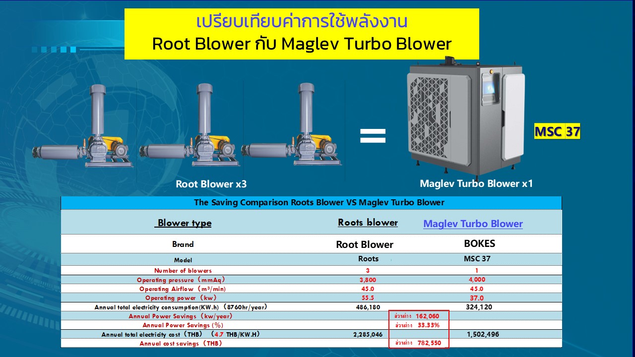 Maglev Turbo Blower สามารถช่วยประหยัดพลังงานถึง 33.33% และ Save cost ได้ถึง 782,550 บาท