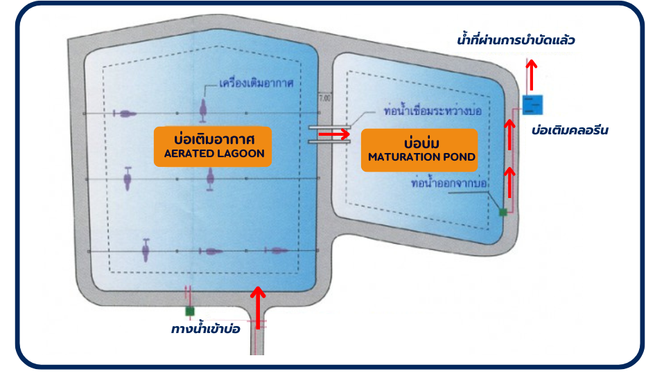 2.บ่อบ่มเพื่อปรับสภาพน้ำทิ้ง (จำนวนบ่อขึ้นอยู่กับการออกแบบ) และ