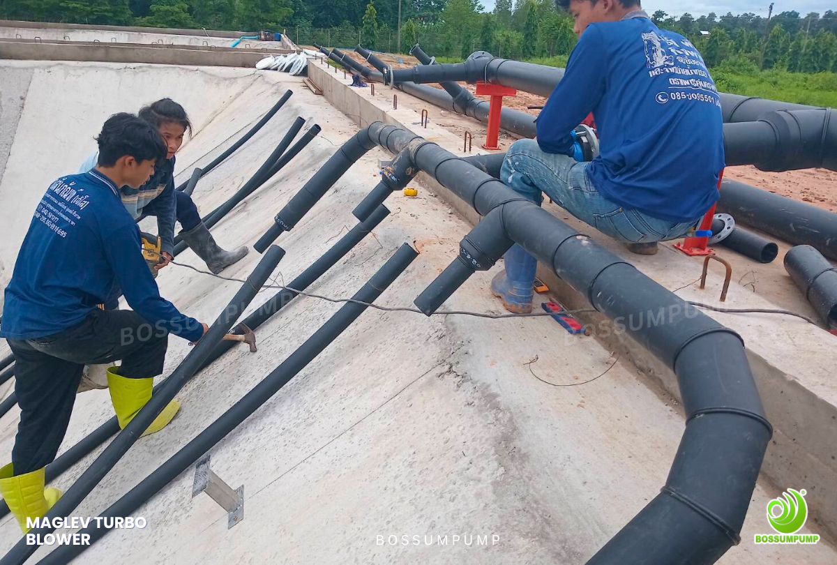 หลังจากเก็บข้อมูล เราออกแบบระบบโดยใช้ Maglev Turbo Blower 37 kW พร้อม Disc Diffuser ครอบคลุมทุกพื้นที่บ่อ เพื่อเพิ่มประสิทธิภาพการละลายออกซิเจน