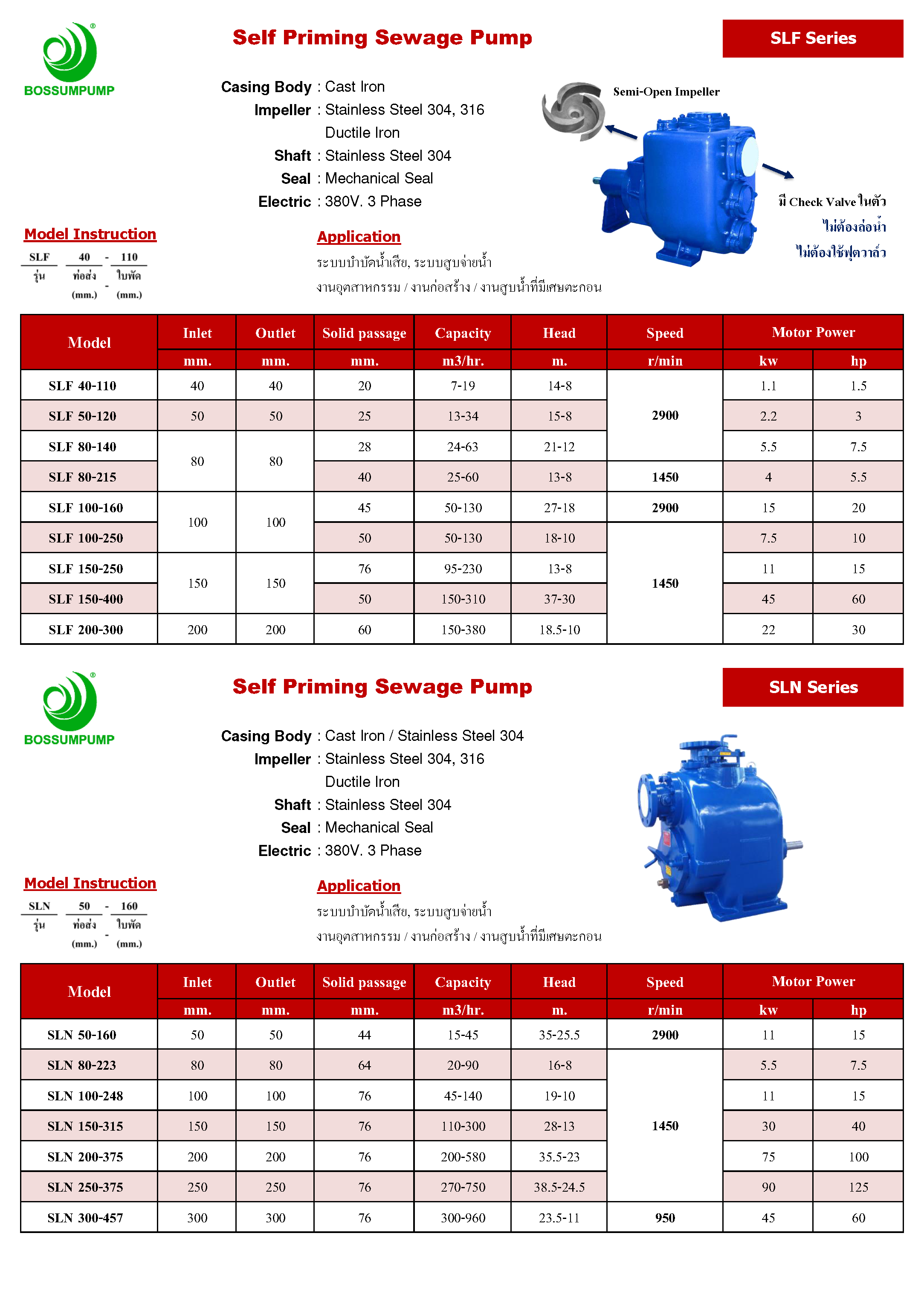 ปัีมสูบตะกอนน้ำเสีย ไม่ต้องล่อน้ำ ไม่ต้องใช้ฟุตวาวล์ ใช้ในอุตสาหกรรมที่มีตะกอน เช่นในระบบบำบัดน้ำเสีย ระบบไบโอแก๊ส น้ำเสียที่่มีตะกอนทุกประเภท สามารล่อน้ำได้ด้วยตัวเอง หมดปัญหารกากตะกอนติดที่ฟุตวาวล์ ใบพัดเป็นแบบเปิดป้องกันตะกอนติก มีช่องด้านหน้าเพื่อนำตะกอนใหญ่ๆออกได้ ออกแบบซีลใช้กับน้ำเสียโดยเฉพาะ ทำให้มีอายุการใช้งานยาวนาน