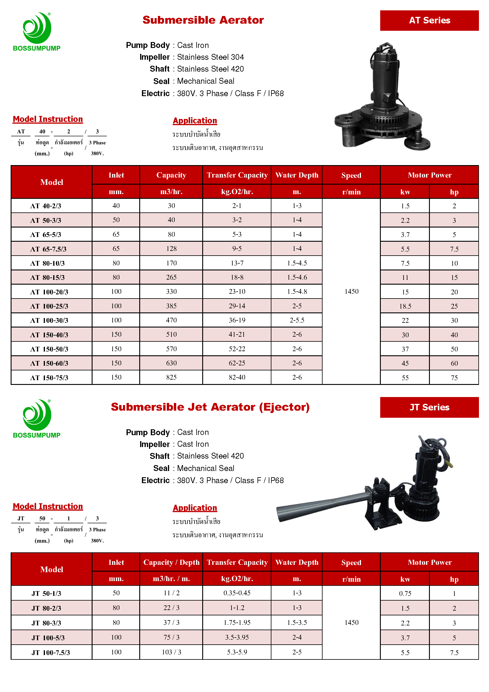 แบบดูดอากาศในตัว ออกแบบมาสำหรับการเติมอากาศและการผสมน้ำเสีย