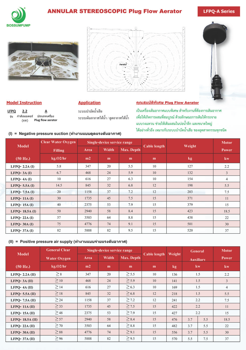 หมวดหมู่ : เครื่องจักรระบบบำบัดน้ำเสีย ,  Aerater / Blower / Diffuser ,  Surface / Plug Flow Aerator / Submersible Aerator / Jet Aerator ,